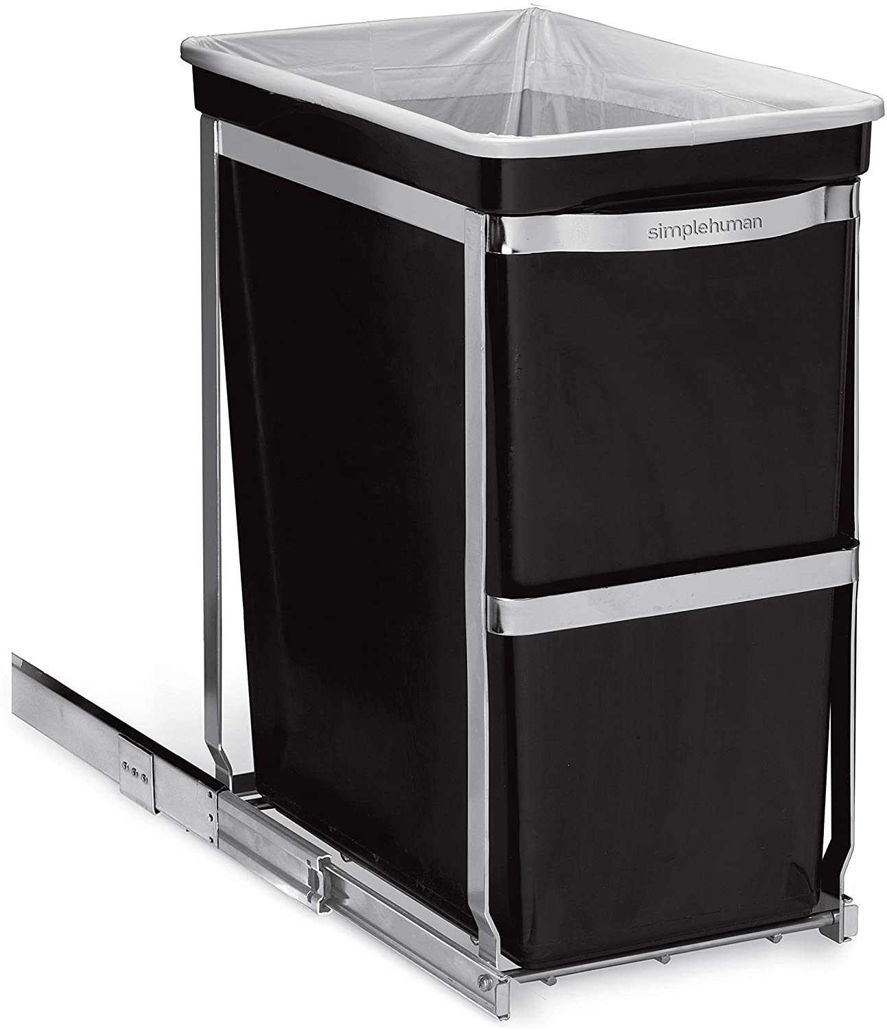 simplehuman 30 Liter / 8 Gallon Under Counter Kitchen Cabinet Pull-Out Trash Can, Heavy-Duty Steel Frame