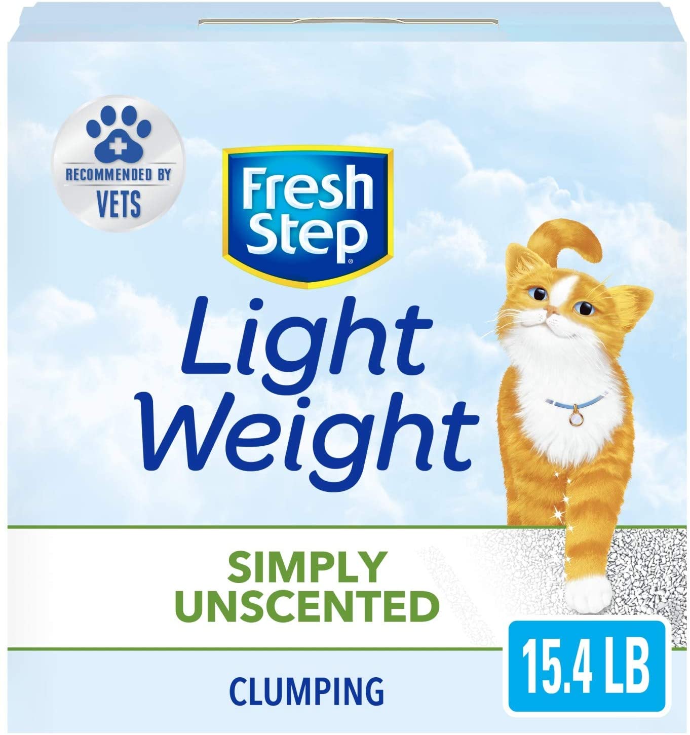 - FRESH STEP LIGHTWEIGHT CAT LITTER: This unscented Fresh Step cat scoopable litter is created with your cat’s health and happiness in mind in a lightweight formula that’s easier to lift, pour, and store